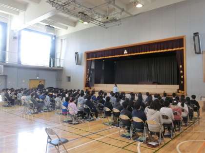 3校時は体育館に6年生が集合しました。一夜明け、昨日とは明らかに変わっている空気を感じたのは、私一人だけではなかったようです。