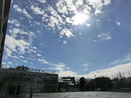 前の記事の5分後には雨がやみ、急速に晴れてきました。校庭にはまだキラキラと水たまりが光っていますが、これから一気に乾いていくことでしょう。爽快な一日(花粉症のぞく)になりそうです。