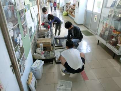 天気に関わらず、飼育委員さんは、お世話を欠かしません。