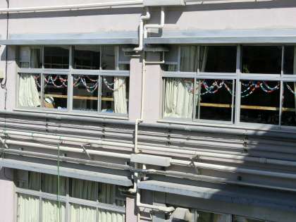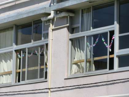 何気なく校舎を眺めていたら、窓際の様子がいつもと違う年度末仕様?! すてきな日々になりますように!