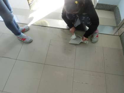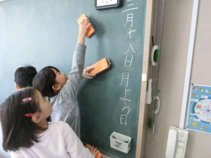 やめられない、とまらない、掃除中継を本日もお届け。なぜなら、みんなが熱心に取り組んでいるからです。1年生だって頼もしい仕事ぶりであります。