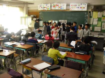 教室に掲示されていたものを、先生と子どもたちが協力し合って外している学級も見られます。お手伝いをすすんで行う存在、頼りになります。