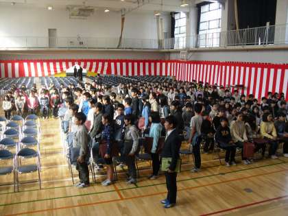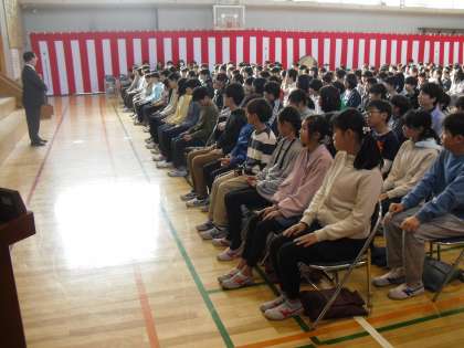 約2時間近い予行を終えたあとでも、高学年のみんなは校長先生のお話に集中して傾聴していました。