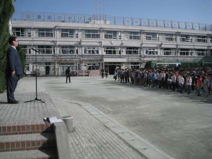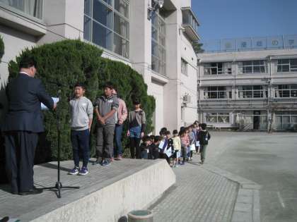 いつもの児童朝会ではなく、今年度をしめくくる修了式です。