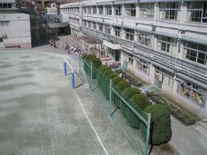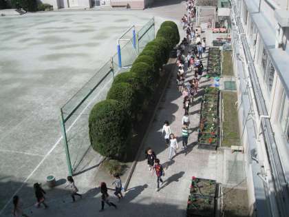 入学式当日と同じ経路で、1年生が体育館へと出発していきました。動きの確認を含めた練習です。