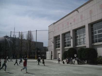 中休みの校庭はたいへんな賑わいを見せていました。友達と、先生と、いつまでも遊んでいたい思いでしたね。