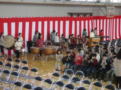 5年生も卒業式の最終練習を迎えました。演奏と歌の仕上げです。式を盛り上げる立役者たち、がんばれ!