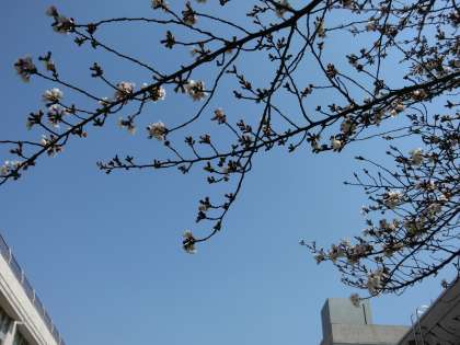 桜はどんどん咲き進んでいます。意外にも校舎北側の日かげにある木が、とっても元気!