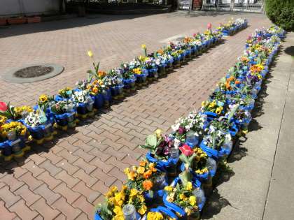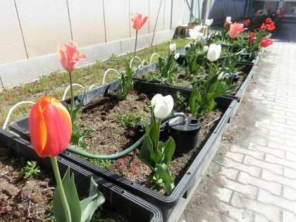 降り注ぐ陽光を浴びて、花壇や鉢の花々が一段と鮮やかさを増しています。春休み中につき、子どもたちの目にふれにくい点が惜しまれるところですが、来週以降も十分に桜以外のお花見を楽しめそうです。