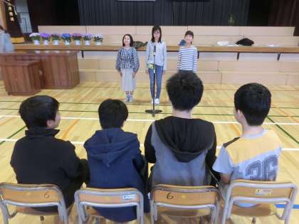 児童代表として言葉を述べる3人の6年生が、友達を1年生に見立てて最終練習に臨んでいました。最上級生らしさがいっぱい、松丘小学校らしさが詰まったメッセージをお楽しみに。