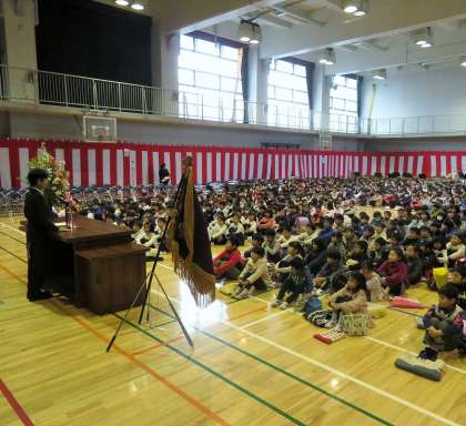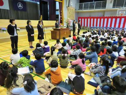 私が演台に立つと、一つずつお兄さん、お姉さんになり、表情の引き締まった子どもたちが、一斉に私の方に注目をしました。