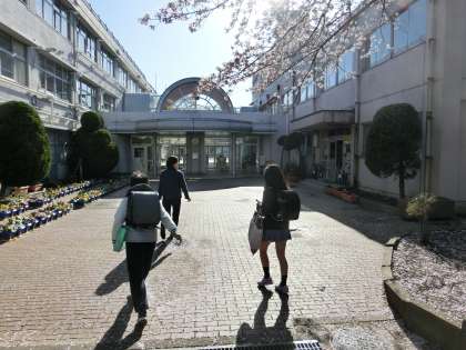 全学年のみんなが登校して来ました。「希望」や「期待」という名の荷物は逆に心を軽くするらしく、いつも以上に朝の挨拶に活力がみなぎっています。