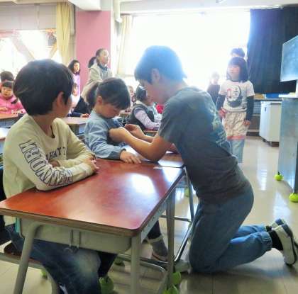 1年生は入学したばかりでわからないことがいっぱいです。私たち教職員はもちろんですが、6年生がそんな不安をやさしくフォローしてくれています。6年生ありがとう!