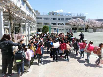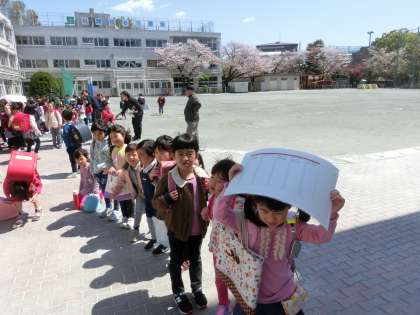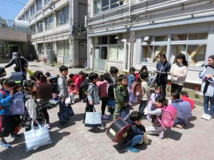 1年生にとっては、本日一番難しいお勉強かもしれません。それは、コース別の下校です。毎年、どの学校でも、ここで違うコースに迷い込んだり、分からないと言って泣き出したりする子がいるものです。