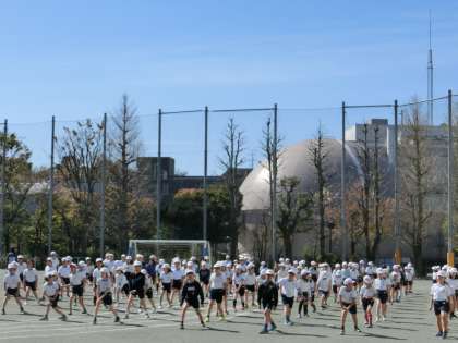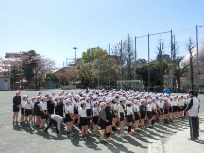 5年生は学年合同体育を行いました。準備運動や整列時、全員の動きが揃っていて、遠くから見ていて大変きれいです。心を揃えた集団行動の美しさは、こんな日常においても発揮されるものなのです。