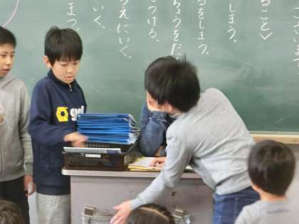 いました、いました、猫が! もとい、頼りになる最上級生たちが! 1年生の各教室でスタンバイしている6年生たちが、提出物を整頓している姿を見かけました。まさに学級経営の救世主です。助かりますよ。ありがとう!