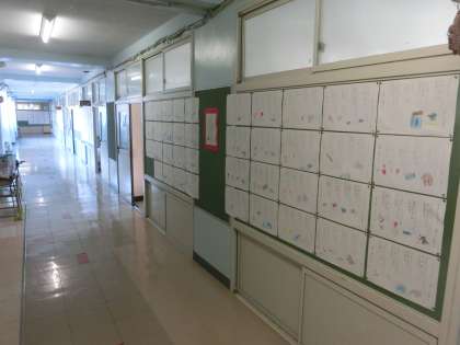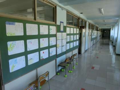 子どもたちの姿はない廊下ながら、先週までのひっそり感とは全く違います。新学期になって仕上げた作品が掲示され始めており、みんなの笑顔がそこに並んでいるかのようです。教室内の壁も新学期仕様になりつつあります。