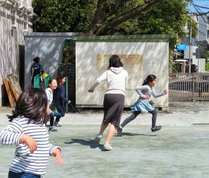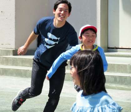 松丘小学校の休み時間は、子どもと教師が一緒に遊ぶ「共遊び」を奨励しています。遊びを通して、授業中だけでは分からない、一人一人のよいところに気づいたり、ほんの小さな変化や情報も、この共遊びの中から得られればと思っています。
