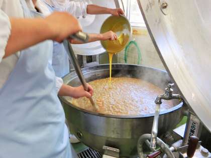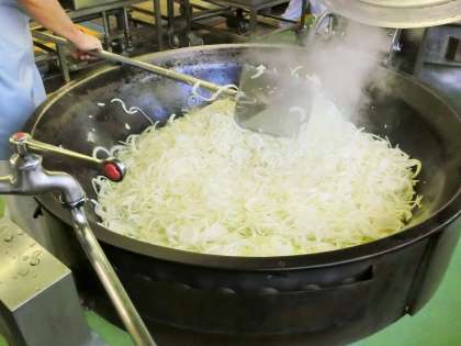 調理員さんはたまねぎの辛さで目が痛くなりながら、おいしい給食を作るためにたまねぎを飴色になるまで炒めていました。