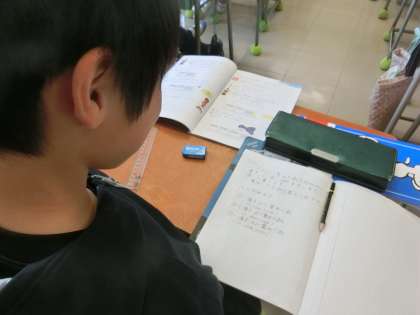 全問正解して大満足、丸が並んだノートをパチリ!
