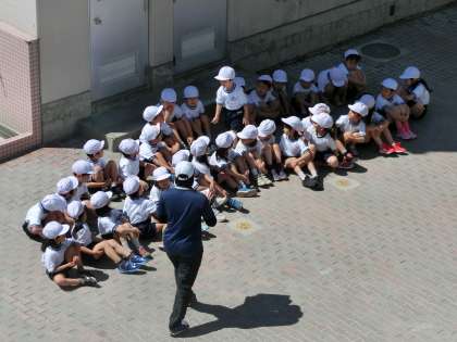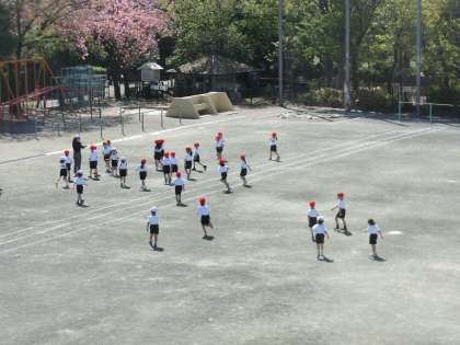 子どもたちが大好きな体育だけに、雨で校庭が使えないと大変なことになります。今日はそんな心配はゼロの好天、2校時は1年生が元気いっぱい活動していました。