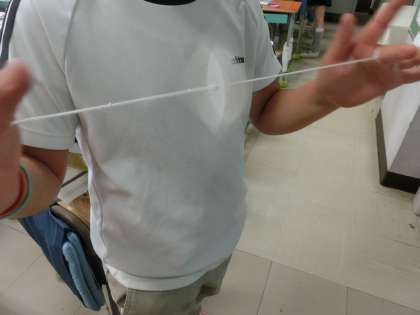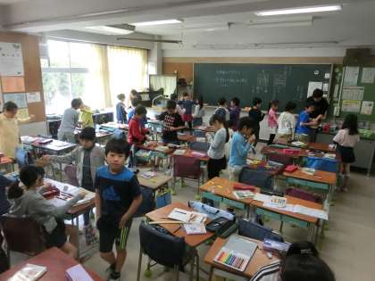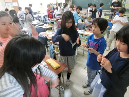 お隣の3年生の教室では、ぶんぶんごまが完成しつつありました。「ぶんぶんごま」の名称通り、ダイナミックな音を発しながら、勢いよく回転する様を、自信たっぷりに見せてくれたみんなです。上出来です。