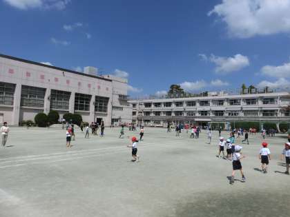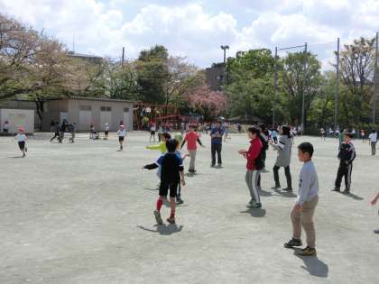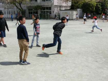 いつも元気に外遊びをする4年生がお留守というだけで、校庭のゆったり感が段違いでした。普段より広々とした印象の校庭で、みんなが思う存分エンジョイしていました。