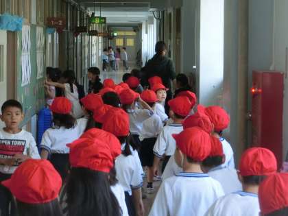 「黙って、歩いて、右側通行」が教室移動の基本です。そのお約束を実行している1年生と出会いましたよ。