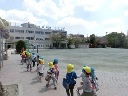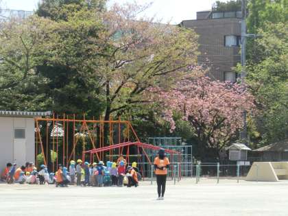 本校と大の仲良し、松丘幼稚園のお友達が遊びに来てくれました。副校長先生と、元気いっぱいのあいさつをしてから、お楽しみの校庭へと歩を進めました。