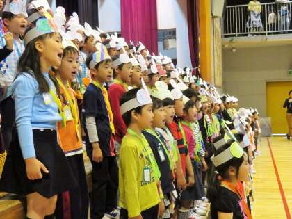 最後に、全校児童で校歌を歌いました。