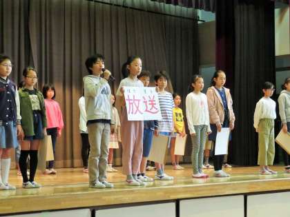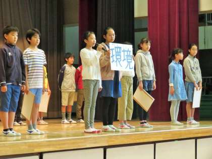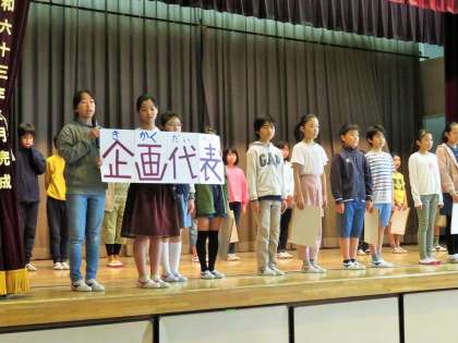 今年度第1回目の集会は、委員会活動の紹介を行いました。本日は6年生がメインで舞台に上がっていますが、実際は5年生の子どもたちも活躍しています。