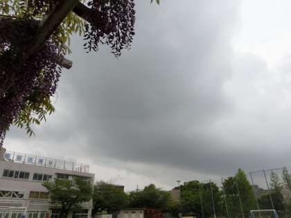 子どもたちはがっかりでしょうが、しばらくカラカラ天気が続いていたため、草花にとっては恵みの雨です。昨日は砂嵐が凄まじかったクラウンドも、湿り気を帯びて、コンディションが改善されることでしょう。