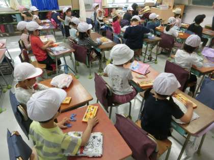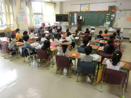 消防写生会が初めての経験となる1年生の教室では、消防自動車をスケッチするにあたっての入念な事前指導が行われていました。これがあるのとないのとでは、子どもたちの作品が段違いです。先生方の丁寧なアプローチが、きっと実を結ぶことと思います。