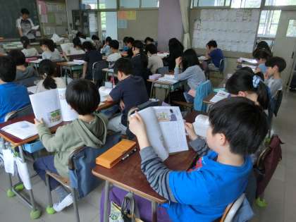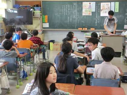 5年生の道徳科、今日のお話は、その名もずばり「あいさつ運動」です。松丘小学校でも行っている取組だけに、子どもたちは日常生活を想起しながら、改めてあいさつの意味について考えたり、自他を見つめたりする時間となっています。小グループによる意見交流も行われ、児童相互に考えを深めている様子がうかがえました。