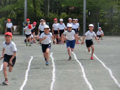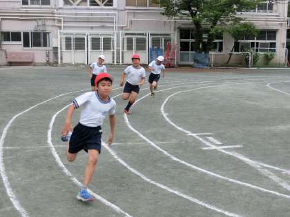 走る速さの個人差に関わらず、全力をふり絞って駆け抜けていました。暑さのきびしい5校時でも、だらけずに活動できていた点も光っていた4年生です。