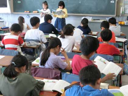 「白いぼうし」の音読発表会が行われていました。4年生の国語教材としては、とても有名な物語文です。