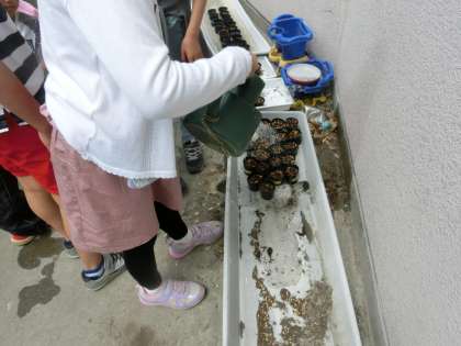 ヘチマは4年生理科の定番教材です。学級園で種まき作業に取り組む子どもたちと出会いました。これから継続していく栽培、観察活動です。充実したものとなりますように。
