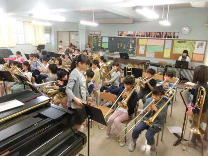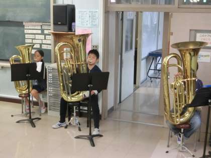 金管バンドに新メンバーが加わって、ひと月が過ぎようとしています。今朝も、4年生のみんなが、練習開始時刻までに登校し、熱心に練習をしていました。それを見守る高学年のまなざしも温かいです。