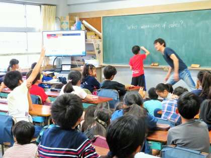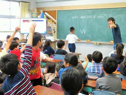 5・6年生は、新学習指導要領を先行実施して、年間70時間の英語に取り組んでいます。今朝は15分間のモジュール学習で、映像を見ながら楽しそうにアルファベットを発音していました。