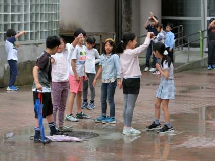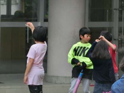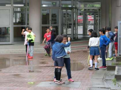 昼になって雨があがりました。傘をささずに、犬走りに出て来た4年生です。目的は、もう言うまでもありませんね。