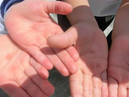 「見て、見て」と言いながら、手のひらを私に差し出した女の子が二人。一瞬、どういうことか理解できなかったのですが、よ〜く見てみると納得! マメが出来ているのです。更に「写真に撮って!」とまで、付け加えられてしまいました。