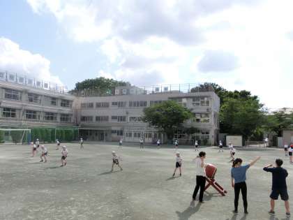 こじんまりとではなく、校庭をいっぱいに使って応援団が練習しています。室内とは勝手が違い、大きな発声を心掛けないと、なかなか声が届きません。その点を意識していたのか、5年生男子が練習終了後に寄って来て