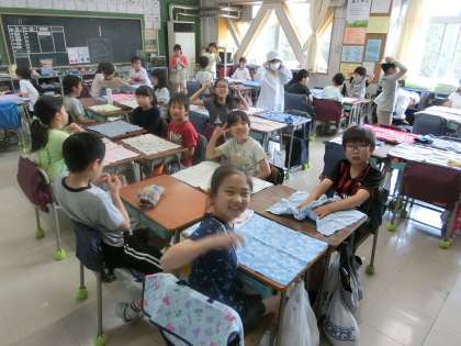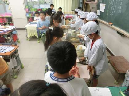 1階の教室では、中学年らしく当番の子が手際よく準備を進めています。