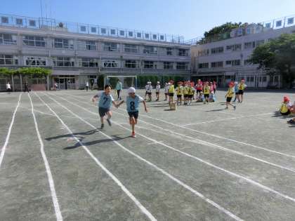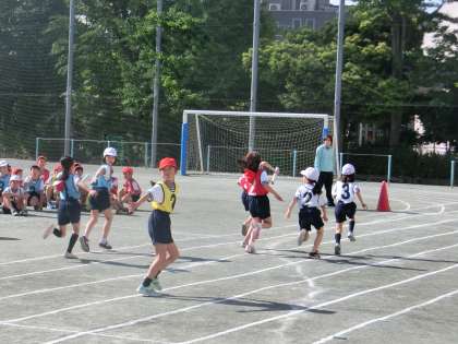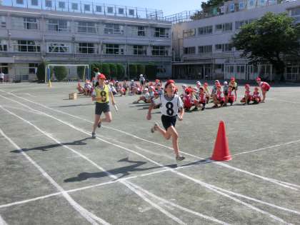 バトンを受け取った時点のコースを走り続けてしまう子が目立ち、インコースへ入ることが大きな目標となっています。