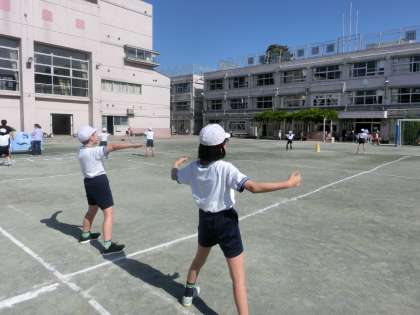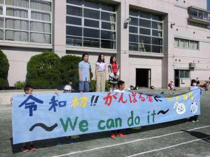 中学年リレーの活動が終わったと思う間もなく、応援団が校庭へ出て来て練習を開始しました。さらに、その横では、企画代表委員のみんなが、運動会のスローガン発表の練習を行っています。それぞれの役割で、頑張る姿があちらこちらで花開く朝です。
