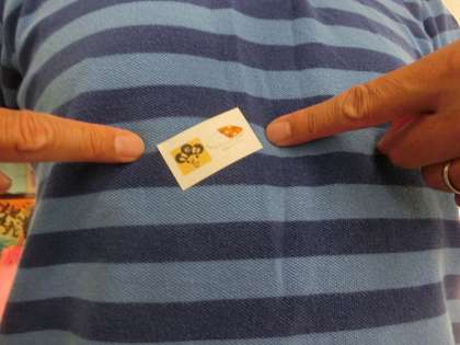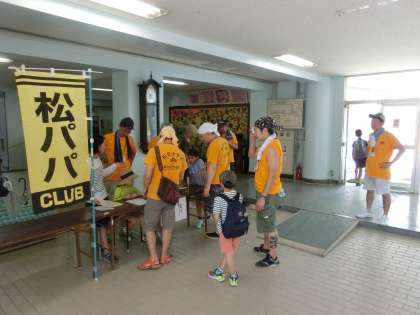 今日は、松小おやじの会「松パパクラブ」のカレーパーティです。のぼりが受付にジャーン! 来校した子どもたちをお出迎えです。受付係として、「松パパ」のお嬢さんたちもスタンバイしていますよ。