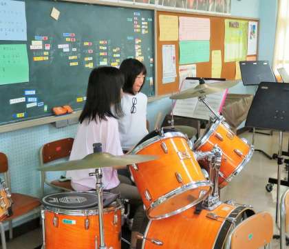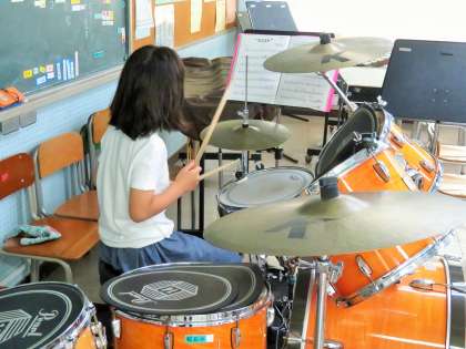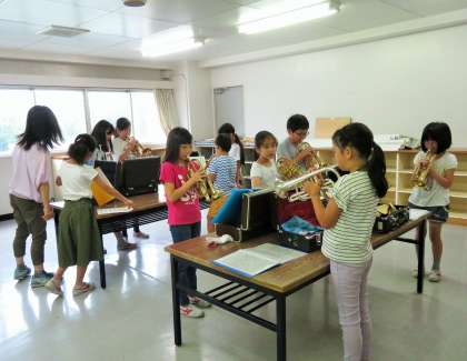 金管バンドの朝練習は、毎朝7時25分から行っています。現在は、運動会に向けて練習をしています。