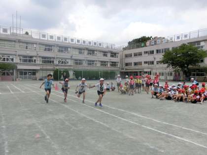 校庭のコンディション不良のため、朝練習で使用することが出来なかった中学年リレーの子どもたちは、特別に昼練習を行いました。