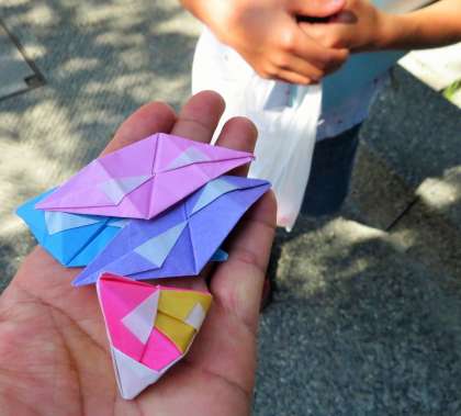 朝のあいさつで南門に立ち子どもたちを迎えていると、私にかわいいプレゼントをくれる4年生がいました。三面体です。3色で作られていて可愛いです。私の宝物が、また一つ増えました!