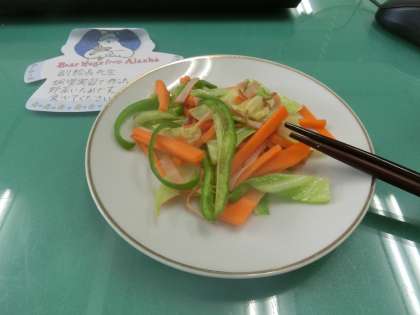 今日は6年生の調理実習があり、校内巡視から戻って来ると、美味しそうな野菜炒めに置き手紙が添えてありました。お礼より先にまずは味見。It's tasty! 10時を迎え、早くも空腹を覚えていた私には願ってもない一品でした!